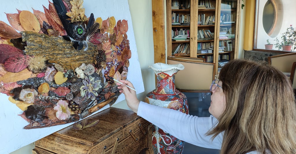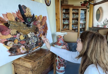 Desde mi taller en Trevelin, Patagonia, trabajo bajo una premisa fundamental: conmover para hacer regresar. Utilizo el collage, el libro de artista y la escultura para atrapar la mirada del espectador y devolverla hacia la naturaleza. En mis piezas, la corteza, la hoja y la tierra dejan de ser elementos biológicos para transformarse en palabras de un lenguaje antiguo y táctil.